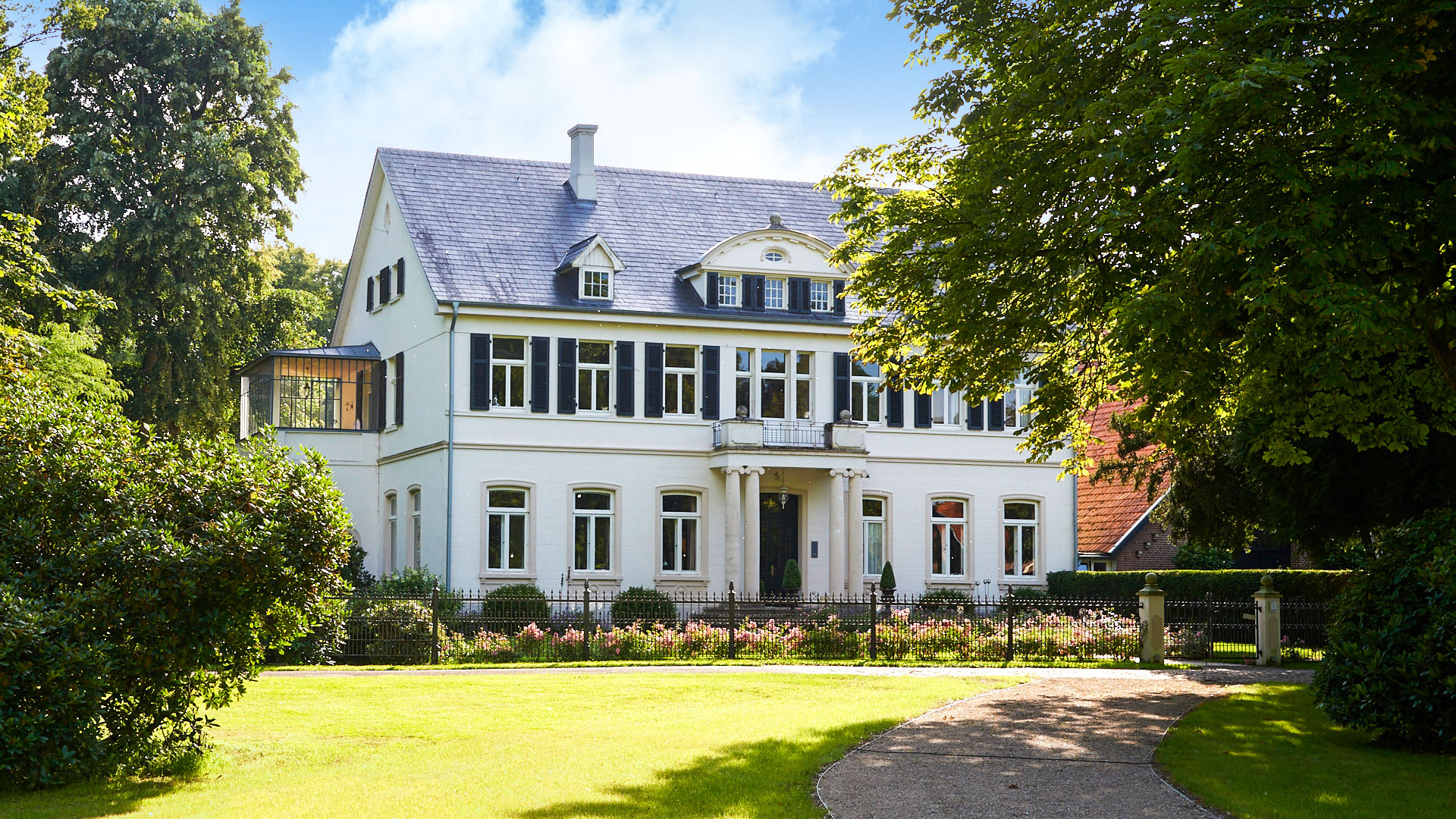 Inmitten weiter Felder, Wiesen und Pferdekoppeln liegt idyllisch das traditionsreiche Gut Horn. Von mächtigen Bäumen umarmt, präsentiert sich dem Gast ein wunderschönes Ensemble mit dem weissen Herrenhaus, ausladenden Scheunen, rosenberankten Remisen und einer lichtdurchfluteten Orangerie.